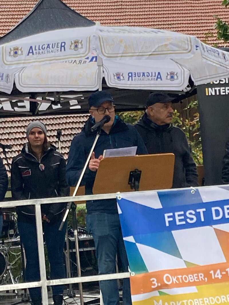 Was für ein Fest! Trotz des schlechten Wetters haben 25 Marktoberdorfer Vereine und Organisationen von der Stadtkapelle bis zum Mobilé, vom Heimatverein bis zur türkisch-islamischen Gemeinde, von der CSU bis zu den Grünen beim "Fest der Demokratie" am Tag der deutschen Einheit auf dem Rathausplatz in jeder Sekunde gute Laune und noch bessere „vibes“ verbreitet, sodass das "Geburtstagskind", unser Grundgesetz, vor allem aber die über 600 Besucher ein tolles Fest feiern konnten. Da hat man mal wieder gesehen, dass die Marktoberdorfer keine Schönwetterdemokraten sind, sondern Wind, Regen und Kälte trotzen! Ein riesengroßes Dankeschön an alle Mitwirkenden und Organisatoren, insbesondere an unsere CSU-Stadträte Thorsten Krebs und Arno Jauchmann sowie Josephine Berger (SPD) und Ralf Molocher (Grüne) für die Organisationsarbeit und ihr großes Engagement!